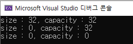 여기서 Clear 함수의 문제가 생기는데, Clear를 이용하면 Vector의 size는 0으로 초기화 되지만, capacity는 초기화 되지 않을 수 있다.